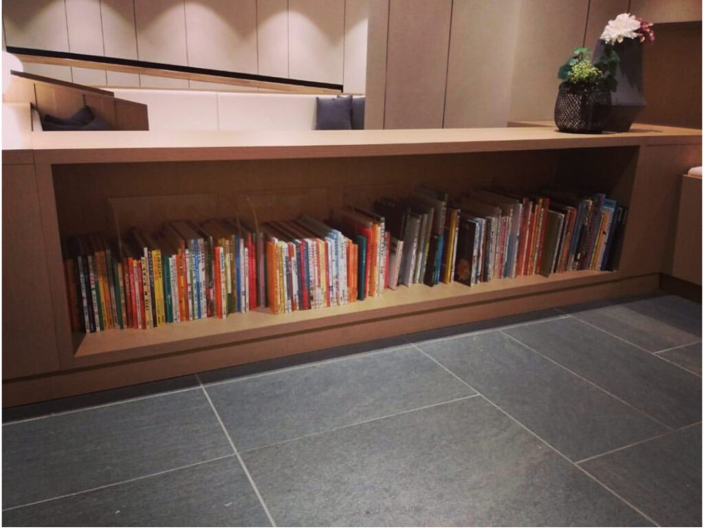 大和ハウス様施工のマンション 住居者専用の共用スペースライブラリーラウンジ 本棚の絵本選書をいたしました。
